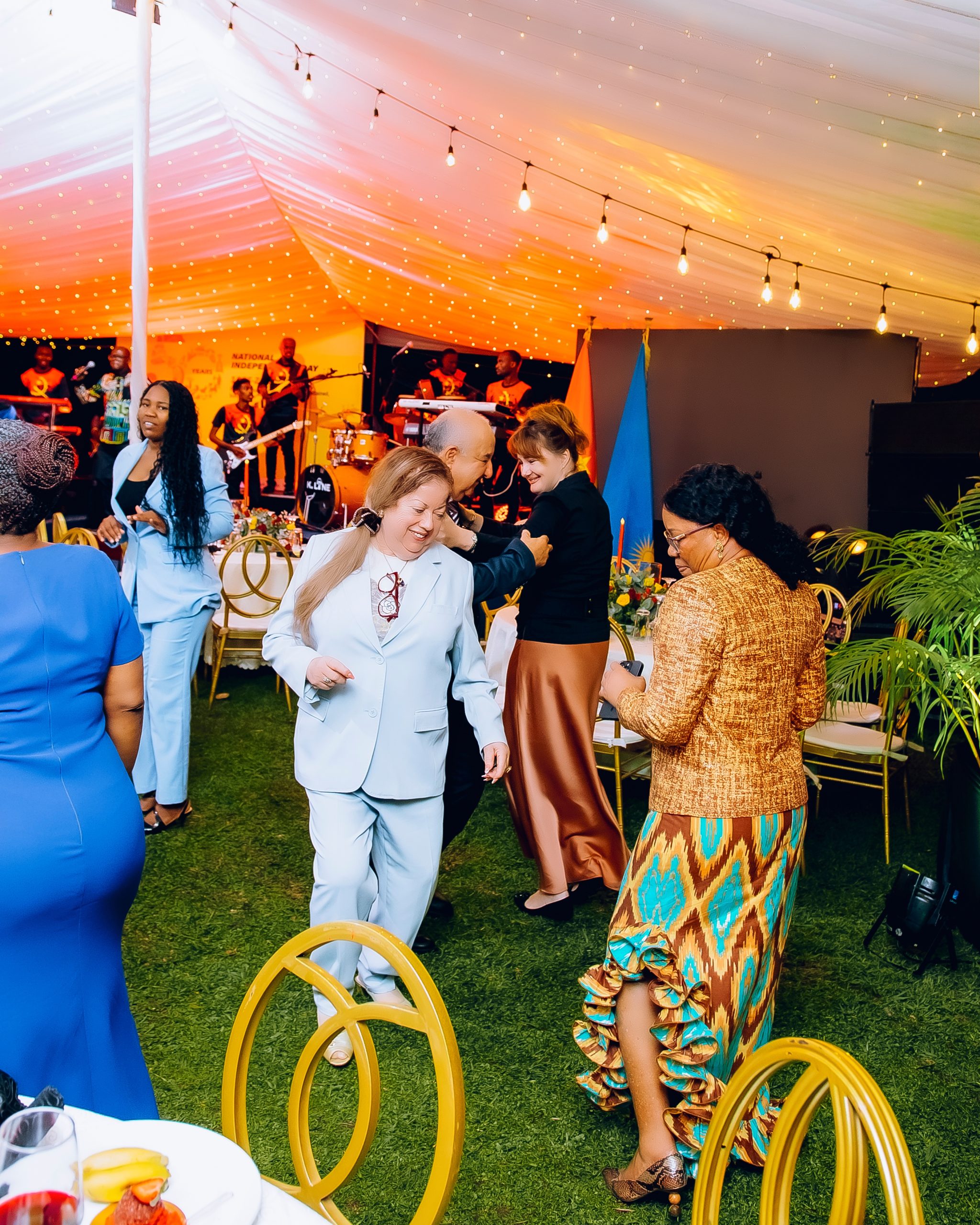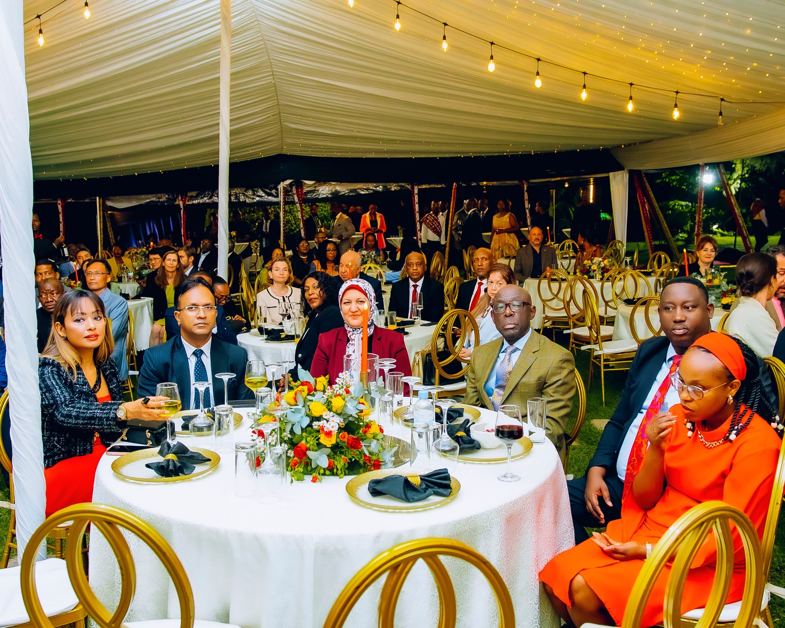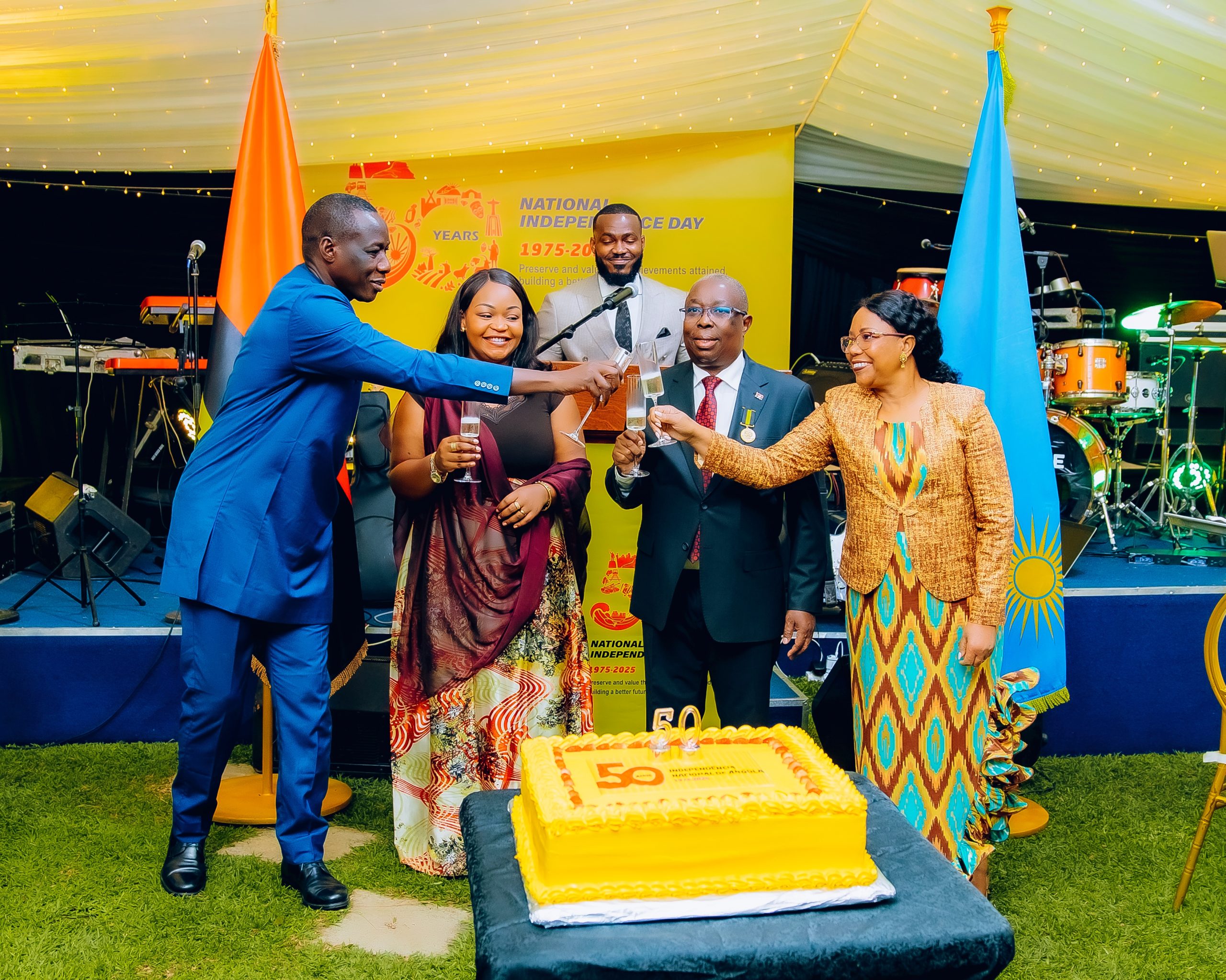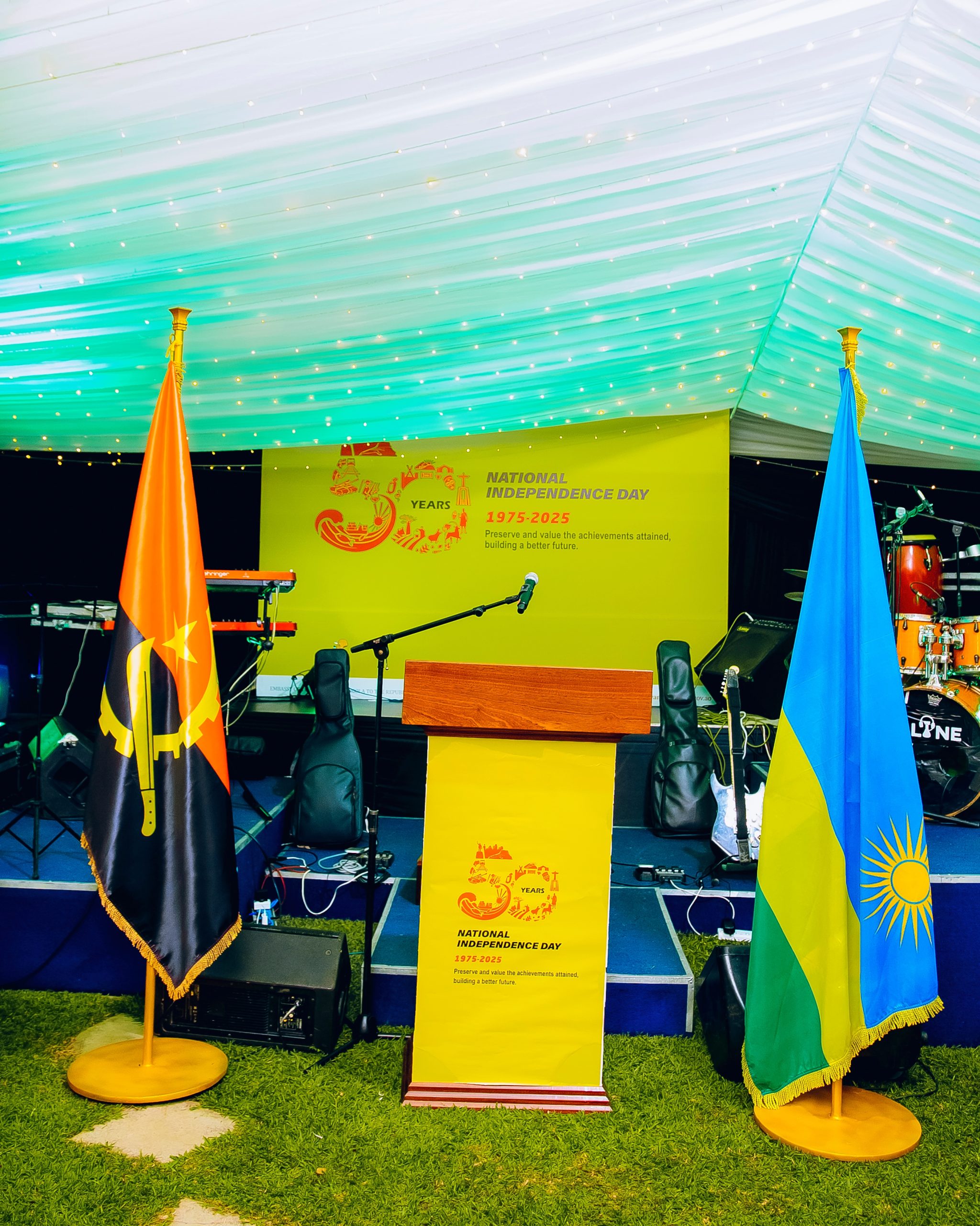 O ponto alto das celebrações ocorreu no dia 14 de Novembro, com a recepção oficial oferecida pelo Embaixador Alfredo Dombe, na Residência Oficial em Kigali, destinada ao Corpo Diplomático acreditado no Rwanda, representantes do Governo rwandês, empresários, académicos, comunidade angolana residente e amigos de Angola. O evento contou com música ao vivo, interpretada pela Banda angolana Nostalgia, convidada especialmente para a ocasião, que encantou os presentes com um repertório vibrante de músicas e danças tradicionais do nosso país proporcionando  um ambiente  de grande celebração, evocando o orgulho e a alegria de um povo, que há cinco décadas conquistou a sua liberdade.