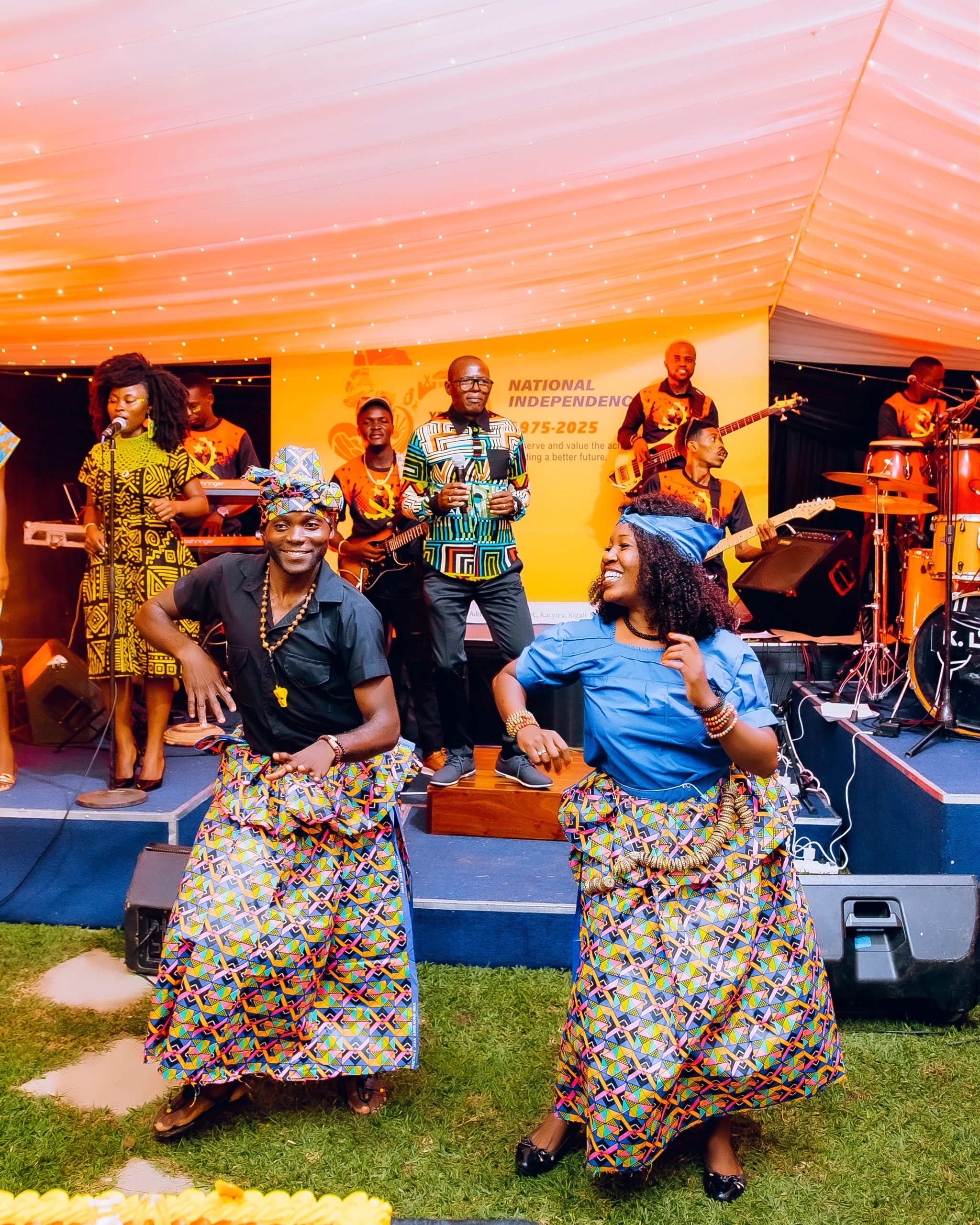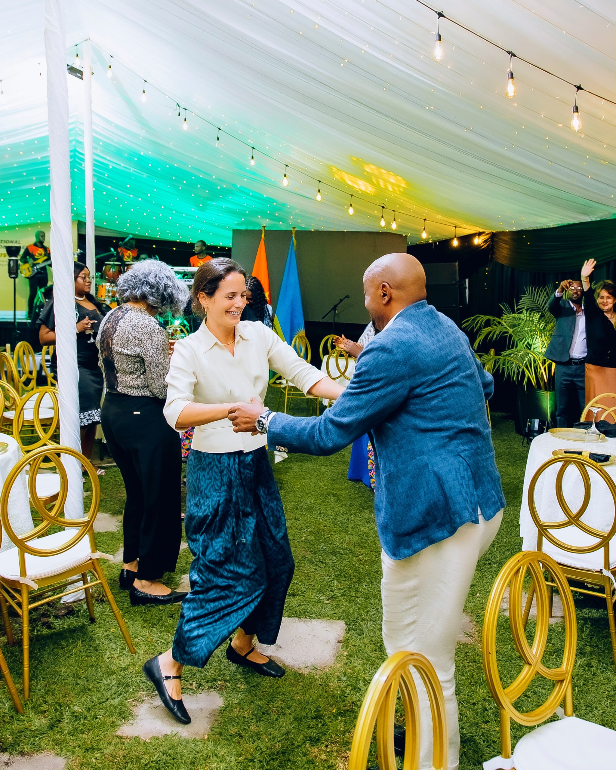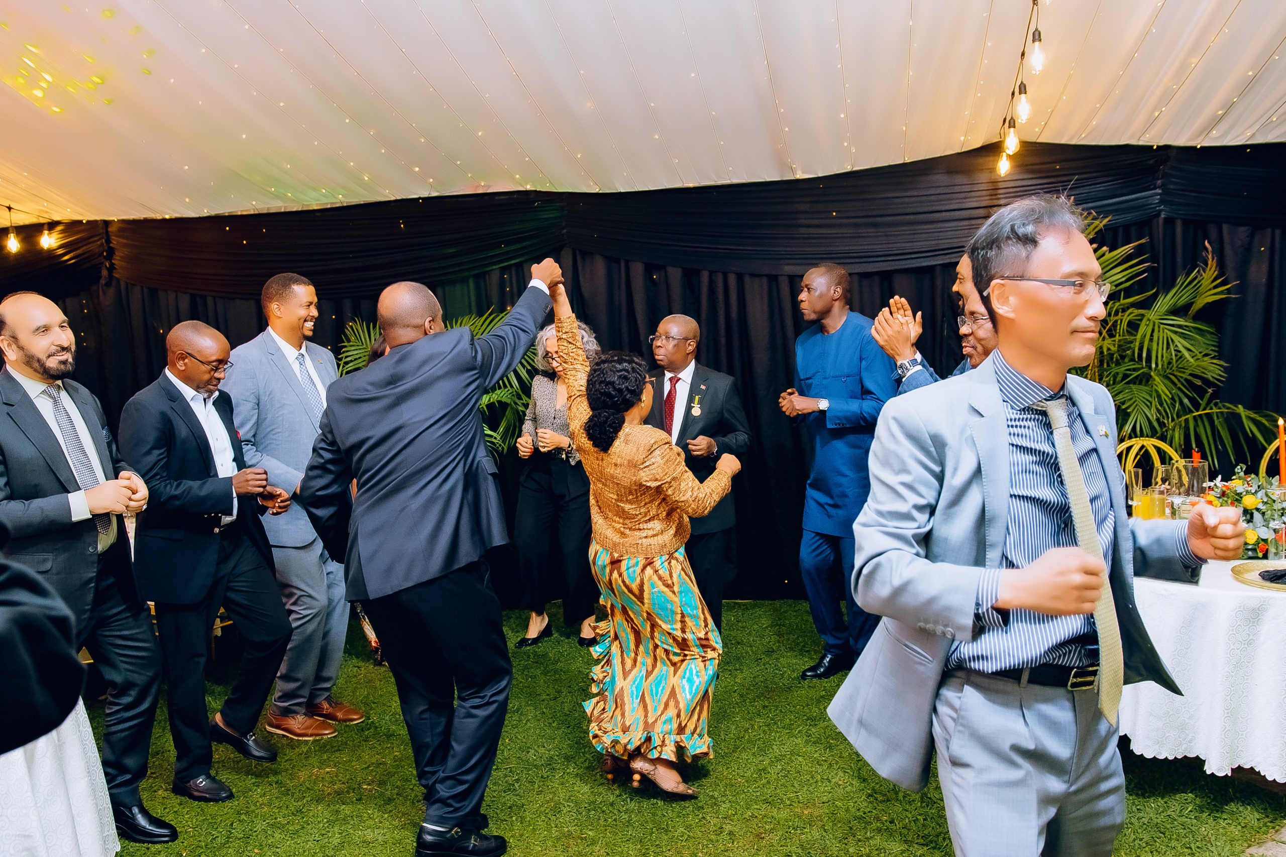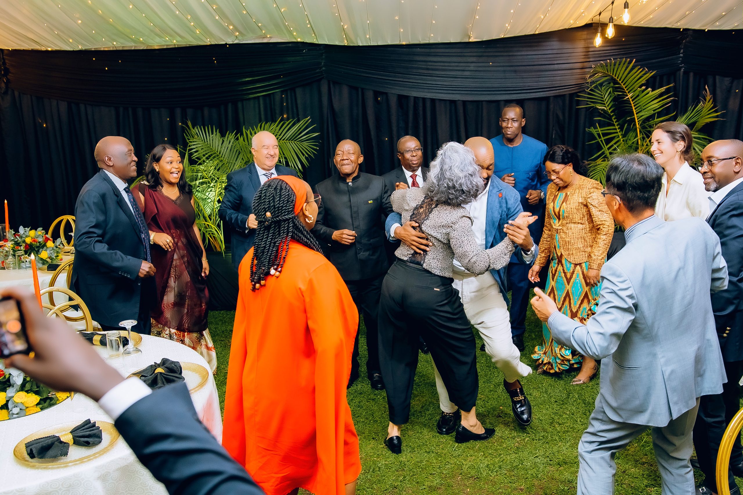 O ponto alto das celebrações ocorreu no dia 14 de Novembro, com a recepção oficial oferecida pelo Embaixador Alfredo Dombe, na Residência Oficial em Kigali, destinada ao Corpo Diplomático acreditado no Rwanda, representantes do Governo rwandês, empresários, académicos, comunidade angolana residente e amigos de Angola. O evento contou com música ao vivo, interpretada pela Banda angolana Nostalgia, convidada especialmente para a ocasião, que encantou os presentes com um repertório vibrante de músicas e danças tradicionais do nosso país proporcionando  um ambiente  de grande celebração, evocando o orgulho e a alegria de um povo, que há cinco décadas conquistou a sua liberdade.