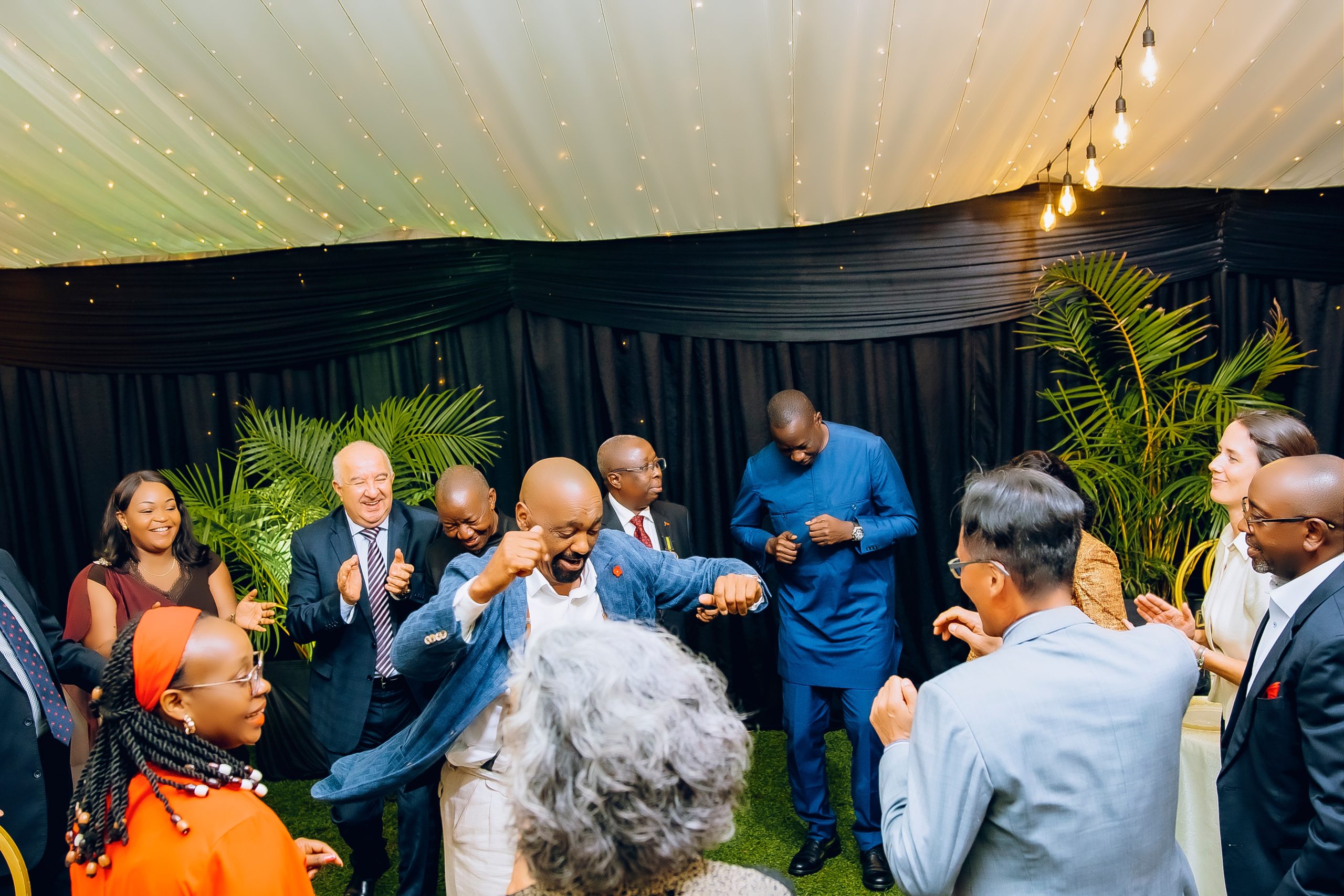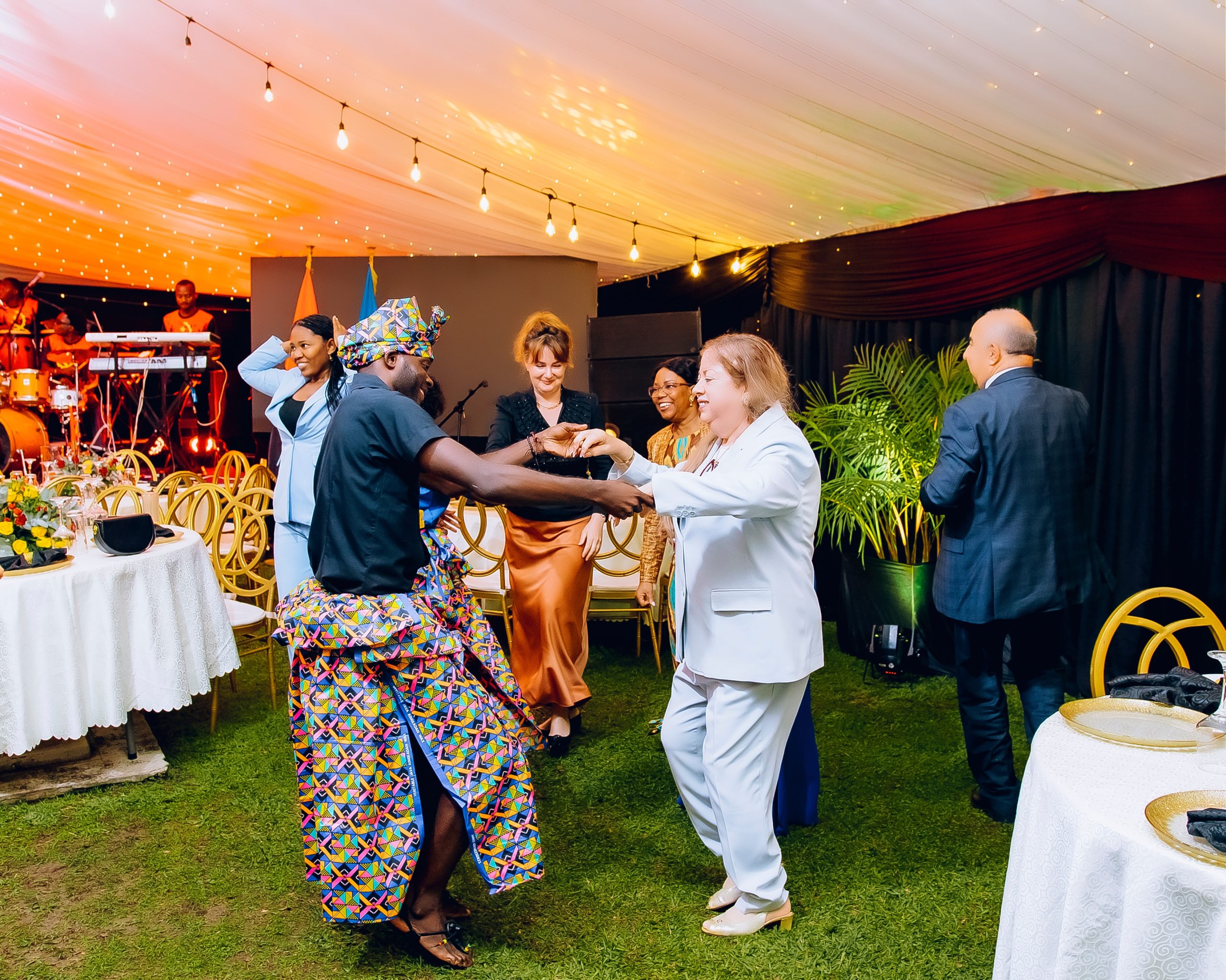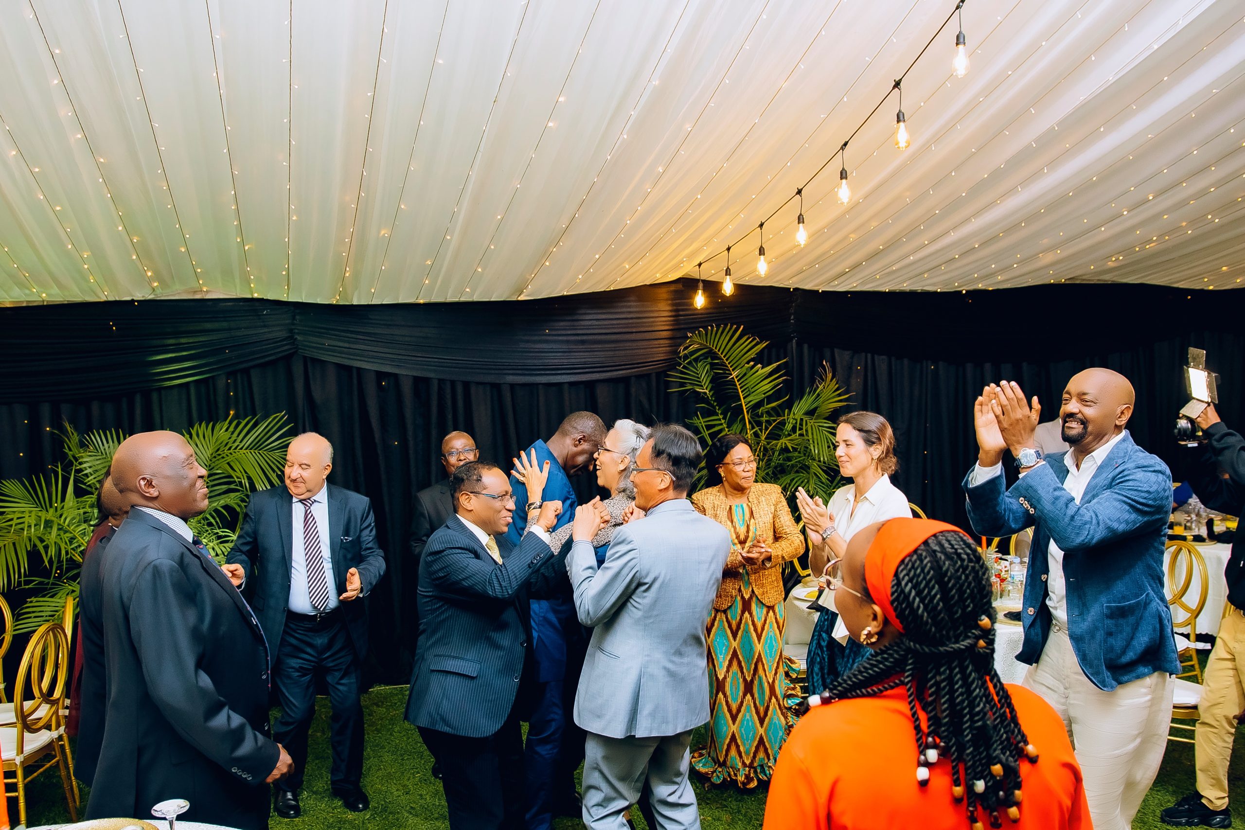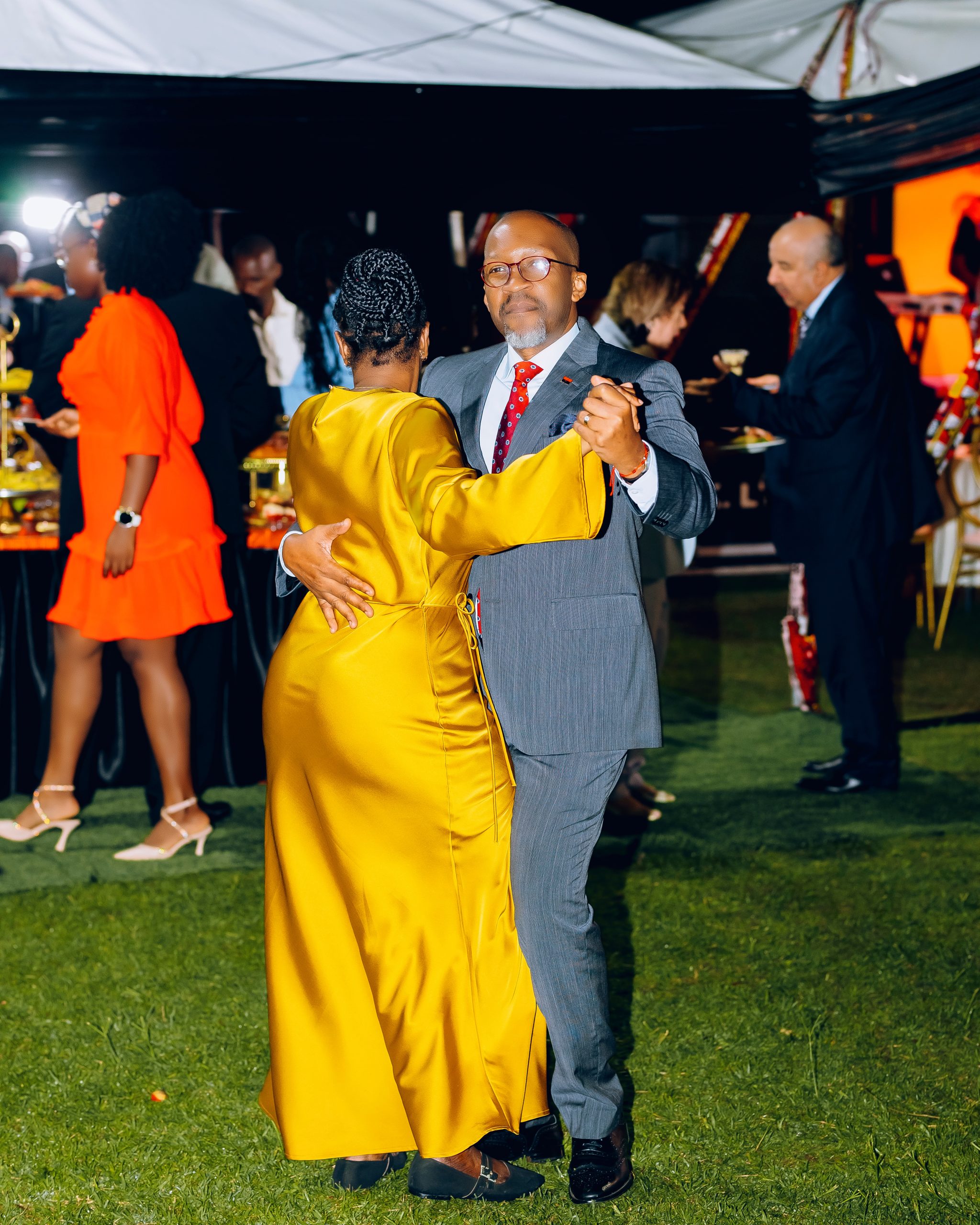 O ponto alto das celebrações ocorreu no dia 14 de Novembro, com a recepção oficial oferecida pelo Embaixador Alfredo Dombe, na Residência Oficial em Kigali, destinada ao Corpo Diplomático acreditado no Rwanda, representantes do Governo rwandês, empresários, académicos, comunidade angolana residente e amigos de Angola. O evento contou com música ao vivo, interpretada pela Banda angolana Nostalgia, convidada especialmente para a ocasião, que encantou os presentes com um repertório vibrante de músicas e danças tradicionais do nosso país proporcionando  um ambiente  de grande celebração, evocando o orgulho e a alegria de um povo, que há cinco décadas conquistou a sua liberdade.