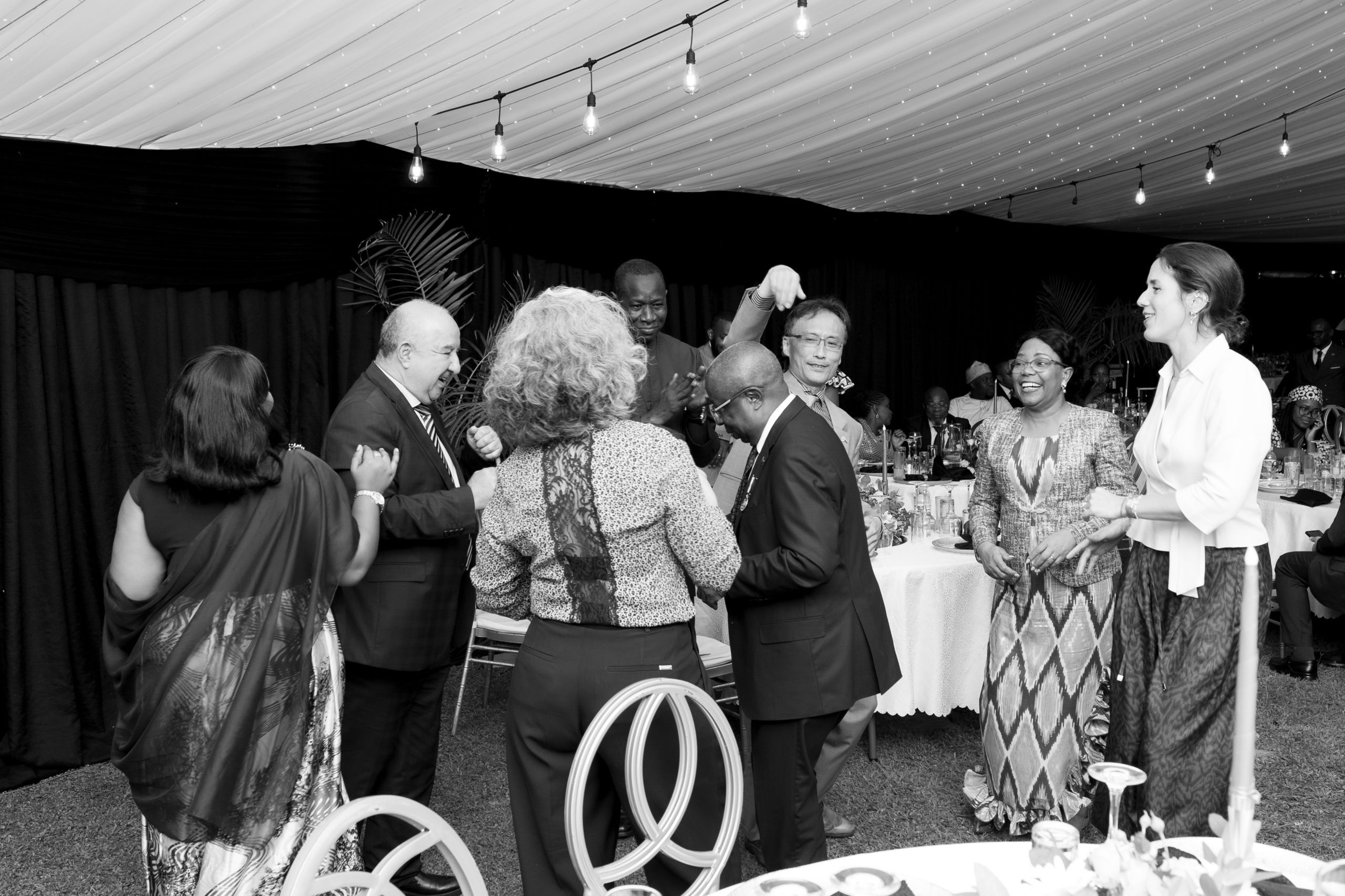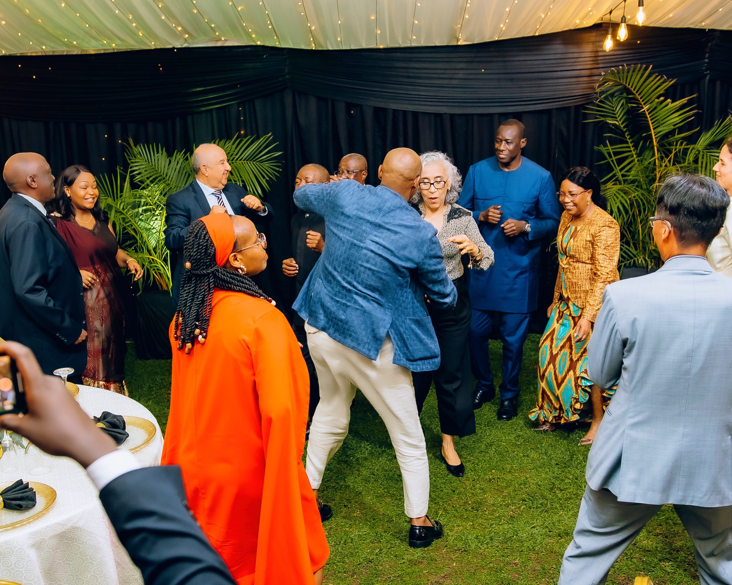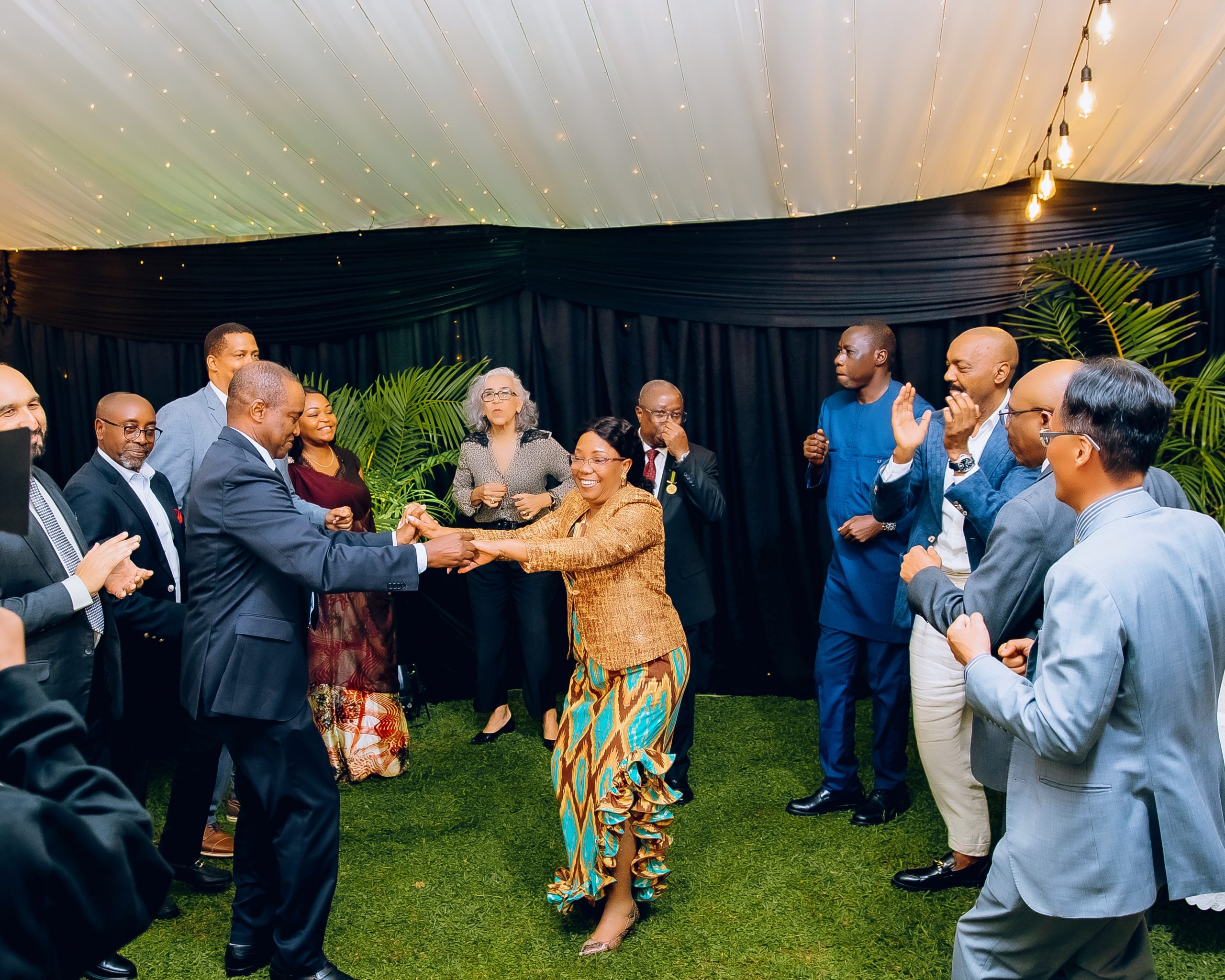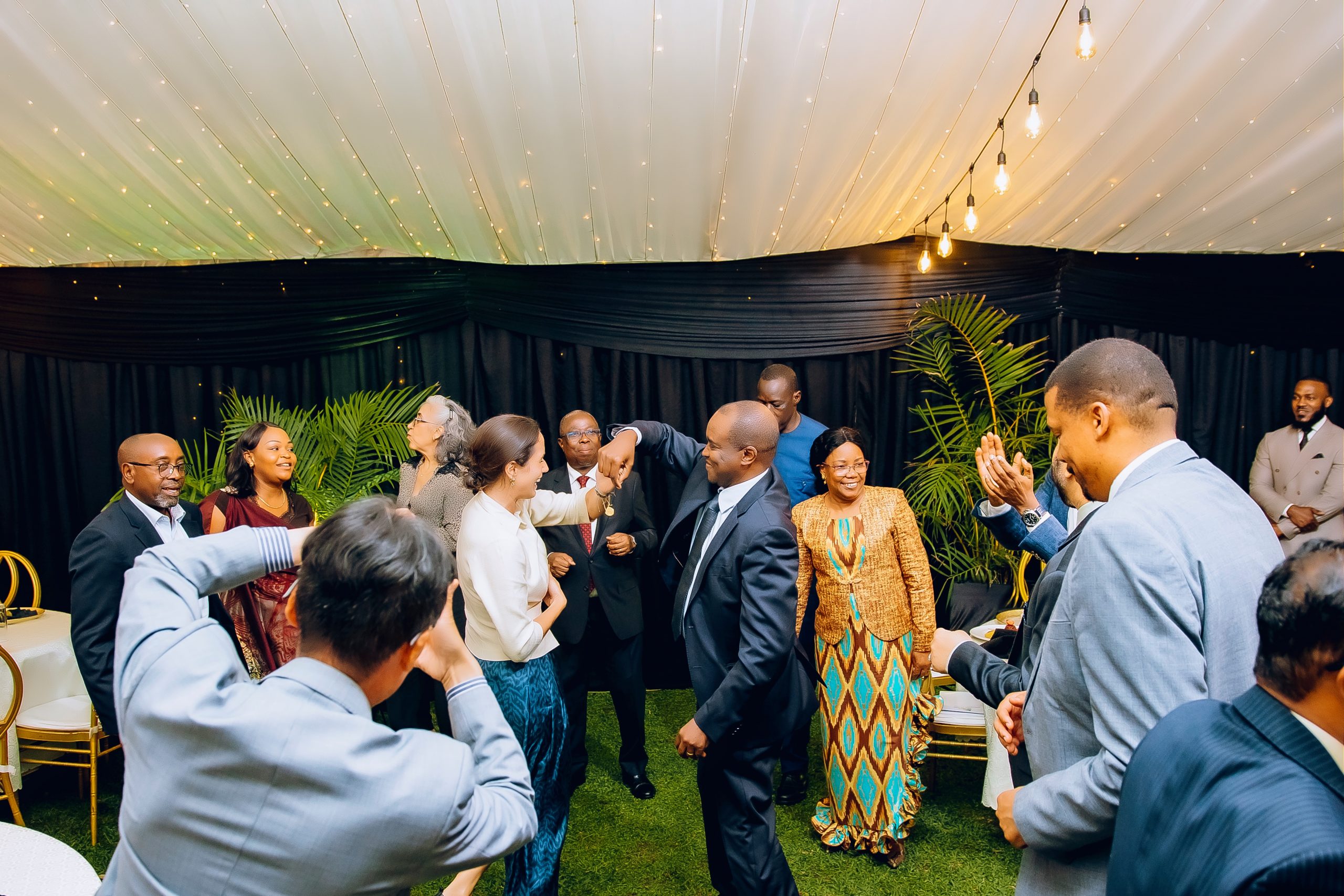 O ponto alto das celebrações ocorreu no dia 14 de Novembro, com a recepção oficial oferecida pelo Embaixador Alfredo Dombe, na Residência Oficial em Kigali, destinada ao Corpo Diplomático acreditado no Rwanda, representantes do Governo rwandês, empresários, académicos, comunidade angolana residente e amigos de Angola. O evento contou com música ao vivo, interpretada pela Banda angolana Nostalgia, convidada especialmente para a ocasião, que encantou os presentes com um repertório vibrante de músicas e danças tradicionais do nosso país proporcionando  um ambiente  de grande celebração, evocando o orgulho e a alegria de um povo, que há cinco décadas conquistou a sua liberdade.